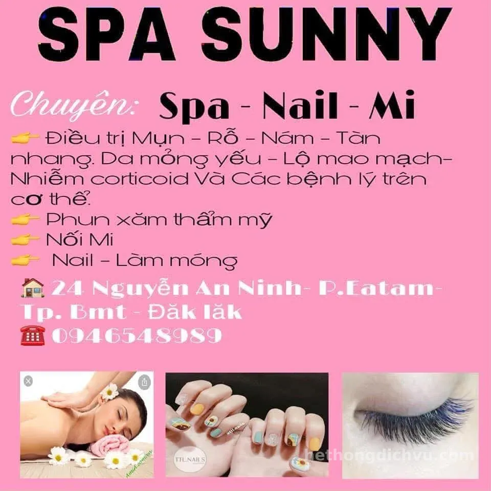 🌿 SUNNY SPA – ĐÁNH THỨC VẺ ĐẸP RẠNG NGỜI TỪ LÀN DA 🌿 ✨ Bạn đang tìm kiếm một nơi chăm sóc da uy tín, an toàn và hiệu quả? Sunny Spa chính là điểm đến lý tưởng để bạn gửi gắm làn da và tận hưởng những phút giây thư giãn trọn vẹn. 💆♀️ Chuyên sâu chăm sóc da mặt Sunny Spa mang đến các liệu trình chăm sóc da chuyên nghiệp, giúp làm sạch sâu, cải thiện mụn, nám, tàn nhang và nuôi dưỡng làn da khỏe mạnh từ bên trong. Mỗi khách hàng đều được soi da và tư vấn kỹ lưỡng để lựa chọn liệu trình phù hợp nhất. ✨ Triệt lông an toàn – hiệu quả Ứng dụng công nghệ hiện đại, Sunny Spa giúp loại bỏ lông nhẹ nhàng, không đau rát, mang lại làn da mịn màng, tự tin hơn trong cuộc sống hàng ngày. 🌸 Không gian thư giãn – dịch vụ tận tâm Đến với Sunny Spa, bạn không chỉ làm đẹp mà còn được thư giãn trong không gian nhẹ nhàng, sạch sẽ cùng đội ngũ kỹ thuật viên tận tình, giàu kinh nghiệm. 💖 SUNNY SPA – Nơi vẻ đẹp của bạn được nâng niu mỗi ngày 💖 📩 Inbox ngay để được tư vấn và đặt lịch trải nghiệm! Chị nhánh 2: 68 D An Dương Vương, phường Thành Nhất BMT